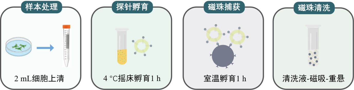 1) 向上步驟的磁珠沉淀加入組分E外泌體清洗液1 mL,于磁力架上靜置3 min,吸棄上清液清洗,重復(fù)清洗兩次。
