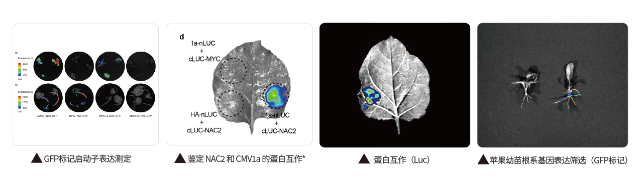 主要應用于植物活體基因表達、植物活體蛋白互作、植物育種篩選、植物生物節(jié)律研究、葉綠素熒光、植物光周期相關研究、植物生長的連續(xù)觀察、植物病菌侵害、植物抗逆性研究等。