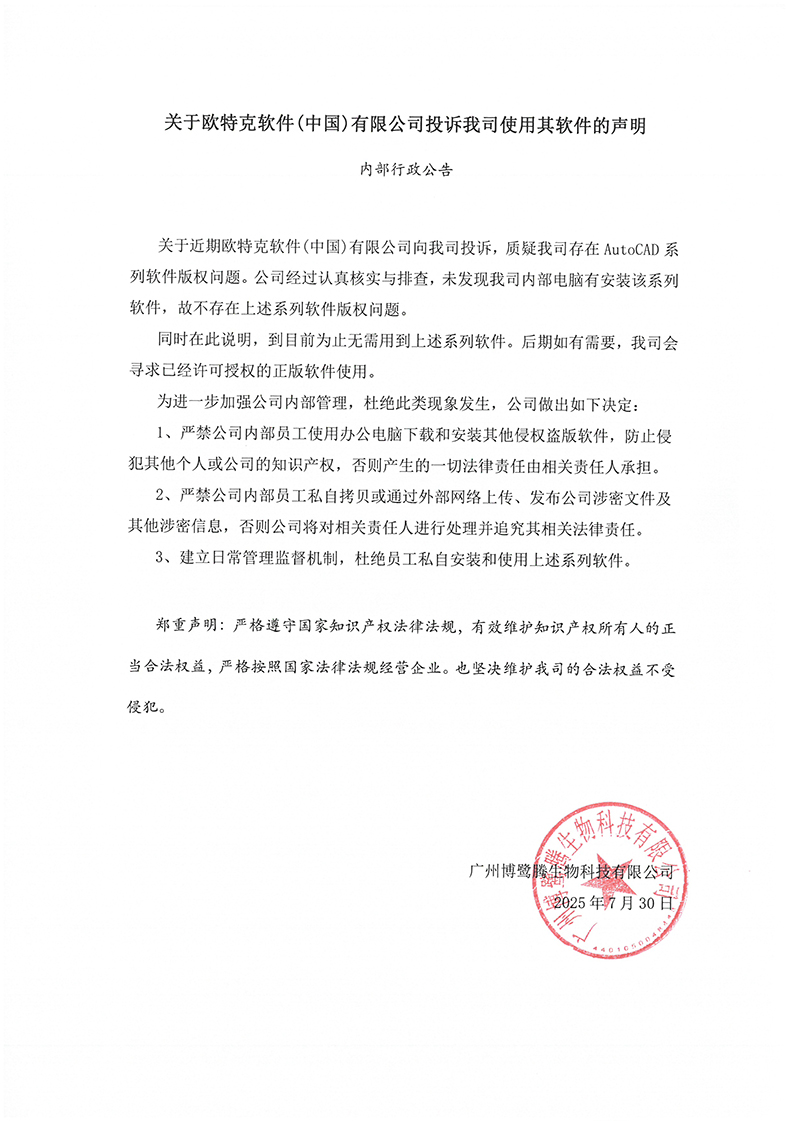 關于歐特克軟件(中國)有限公司投訴我司使用其軟件的聲明
