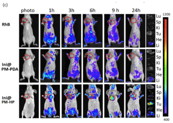 小鼠注射藥物后不同時間段主要器官和組織的熒光圖像