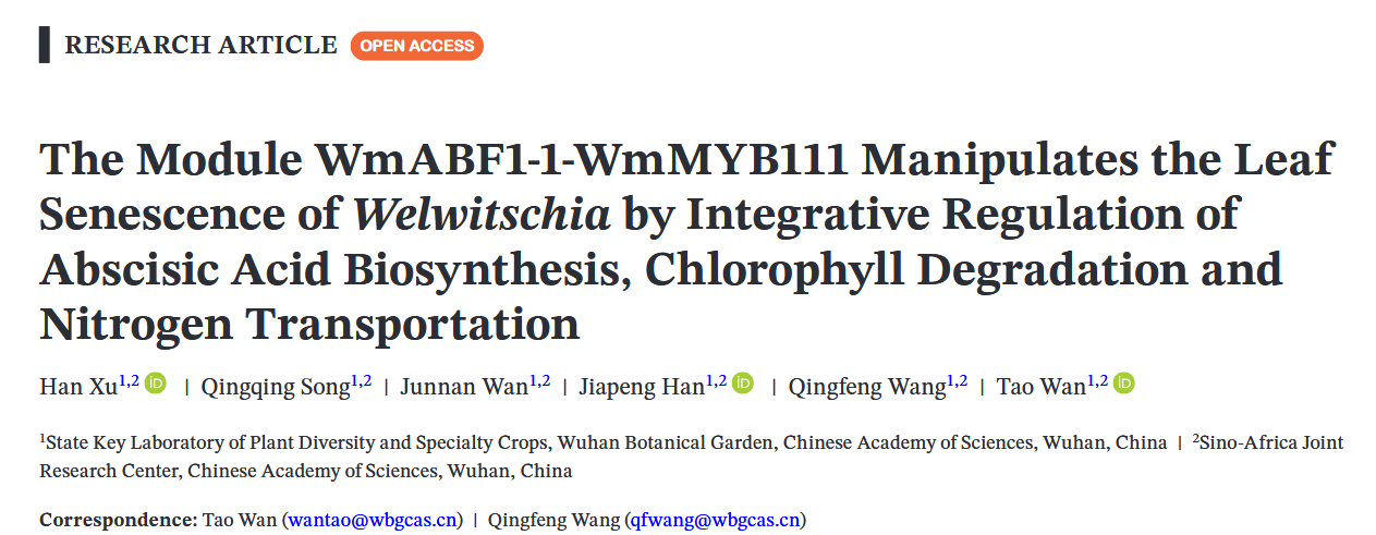 近日,中國科學(xué)院武漢植物園萬濤和王青鋒研究員團(tuán)隊在百歲蘭(Welwitschia mirabilis)葉片衰老的調(diào)控機制研究方面取得了新進(jìn)展。相關(guān)研究成果已經(jīng)發(fā)表在國際權(quán)威期刊《Plant Biotechnology Journal》(IF=10.5、一區(qū)top期刊)上。