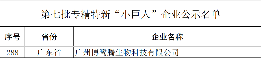 10月17日,廣東省工業(yè)和信息化廳權(quán)威發(fā)布新一批國家級專精特新“小巨人”企業(yè)名單,廣州博鷺騰生物科技有限公司憑借其在生命科學(xué)領(lǐng)域的深厚積累與硬核實(shí)力,成功躋身國家級“小巨人”企業(yè)行列。