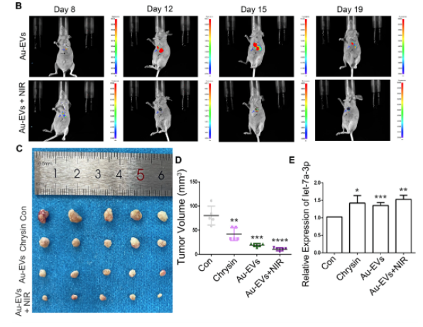 這些結(jié)果表明,Au-EVs 有效地介導(dǎo)了等離子光熱療法(PPT)并抑制了體內(nèi)腫瘤的生長。
