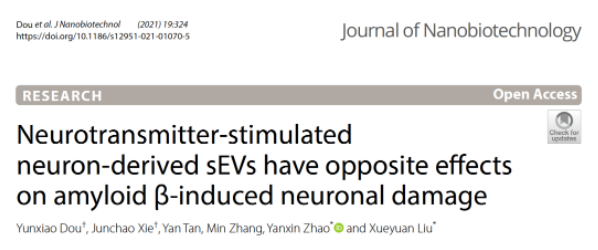 近日,同濟(jì)大學(xué)醫(yī)學(xué)院附屬上海市第十人民醫(yī)院神經(jīng)內(nèi)科趙延欣教授及劉學(xué)源教授課題組在細(xì)胞外囊泡與神經(jīng)退行性疾病關(guān)系研究領(lǐng)域取得了新的進(jìn)展。該項(xiàng)研究從小細(xì)胞外囊泡的角度為阿爾茲海默癥中發(fā)生的興奮抑制失衡提供了新見解。相關(guān)研究成果已發(fā)表在國際知名期刊《Journal of Nanobiotechnology》(IF:10.435,JCR 2區(qū))。