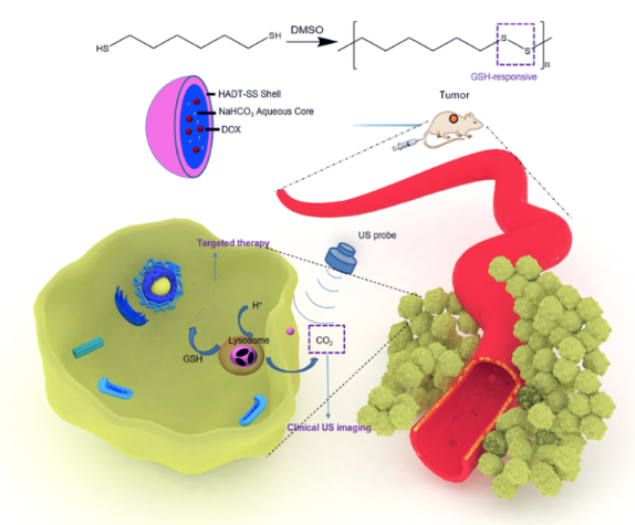 基于納米粒子(NPs)的UCAs因其無創(chuàng)性、精確靶向、可見性和裝載小分子的便利性而受到越來越多的關(guān)注。產(chǎn)生氣體的NPs具有很高的回聲敏感性,二硫鍵可以用于還原響應(yīng)性NPs藥物遞送系統(tǒng)制備。目前,已報道的同時具有超聲成像和治療功能的醫(yī)用NPs大多僅基于pH響應(yīng)性藥物釋放,并且藥物釋放速率不完全。