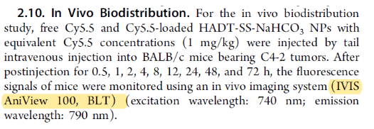 文章中,標記Cy5.5的HADT-SS-NaHCO3NPs在C4-2荷瘤裸鼠體內(nèi)的生物分布活體實驗成像,使用了博鷺騰AniView100多模式動物活體成像系統(tǒng)拍攝。