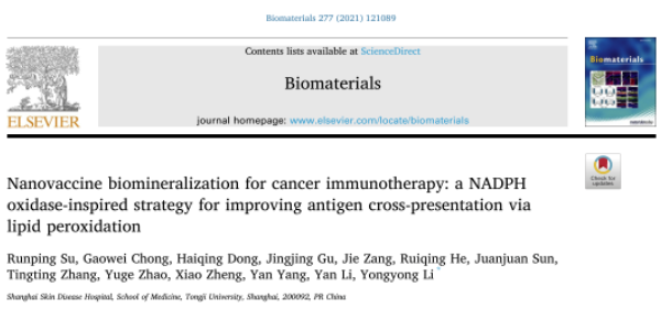 近日,同濟大學(xué)醫(yī)學(xué)院-納米院李永勇教授團隊在納米醫(yī)學(xué)領(lǐng)域取得新的研究成果,在國際知名期刊《Biomaterials》(IF=12.479,JCR1區(qū))上發(fā)表研究性論文。