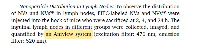 文章中,評估NVscp在小鼠體內(nèi)淋巴結(jié)的累積活體實驗成像,使用了AniView100多模式動物活體成像系統(tǒng)拍攝。