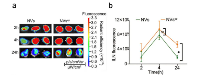 圖3|NVscp在小鼠體內(nèi)淋巴結(jié)累積的情況
