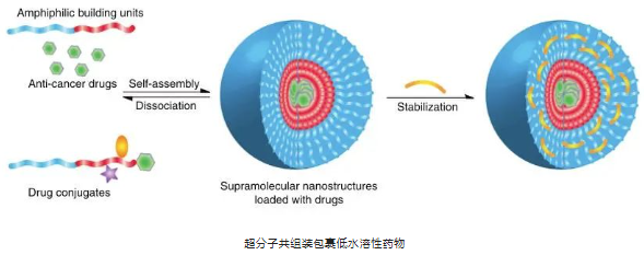 超分子共組裝方法(Supramolecular co-assembly,由分子構筑單元通過非共價相互作用自組裝而成)因其簡單、綠色等優(yōu)點被廣泛應用于構建納米遞送載體平臺,納米單元在共組裝過程中保持并擁有各組成單元的生物活性,從而獲得協(xié)同抗腫瘤、減緩化療藥物副作用和提高腫瘤治療效果。