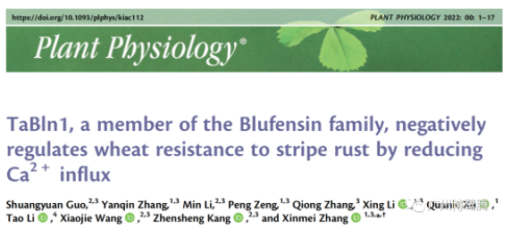 近日,西北農(nóng)林科技大學(xué)康振生/張新梅團(tuán)隊(duì)在《Plant Physiology》發(fā)表了題為《TaBln1, a member of Blufensin family, negatively regulates wheat resistance to stripe rust by reducing Ca2+ influx》的研究論文,揭示了小麥感病基因負(fù)調(diào)控小麥抗條銹病新機(jī)制。該研究為揭示小麥感病基因在植物與病原菌互作過程中的分子機(jī)制提供了新線索,為小麥分子設(shè)計(jì)育種提供了具有重要應(yīng)用價(jià)值的基因資源。