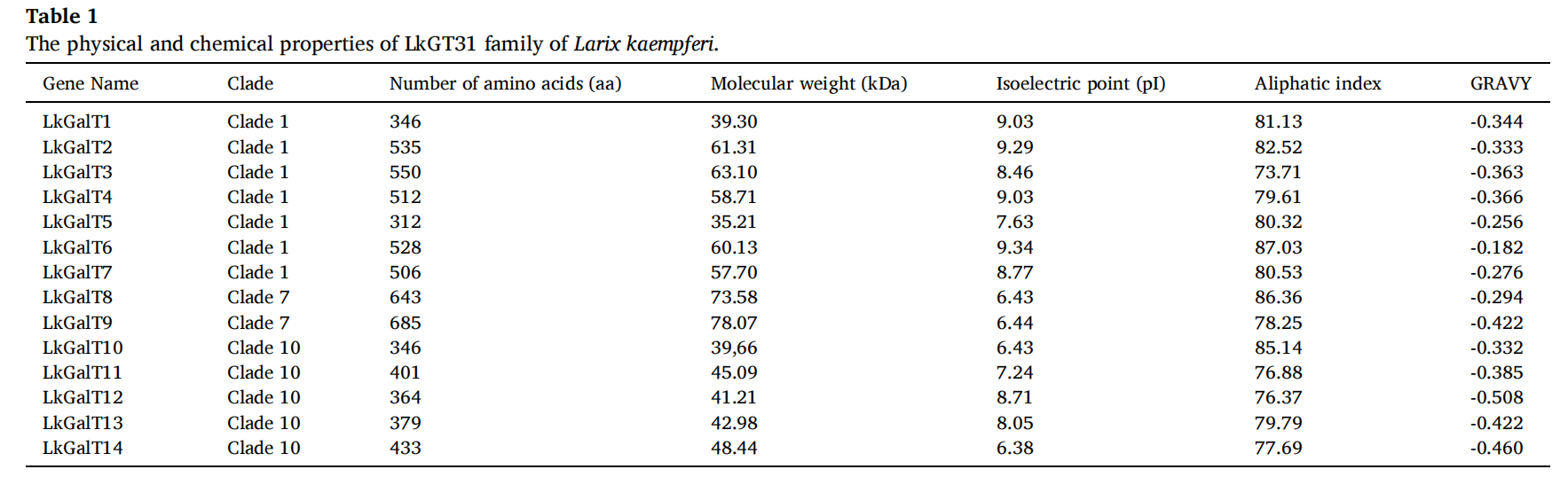 ▲ 表1 日本落葉松 LkGT31 家族的理化性質(zhì)